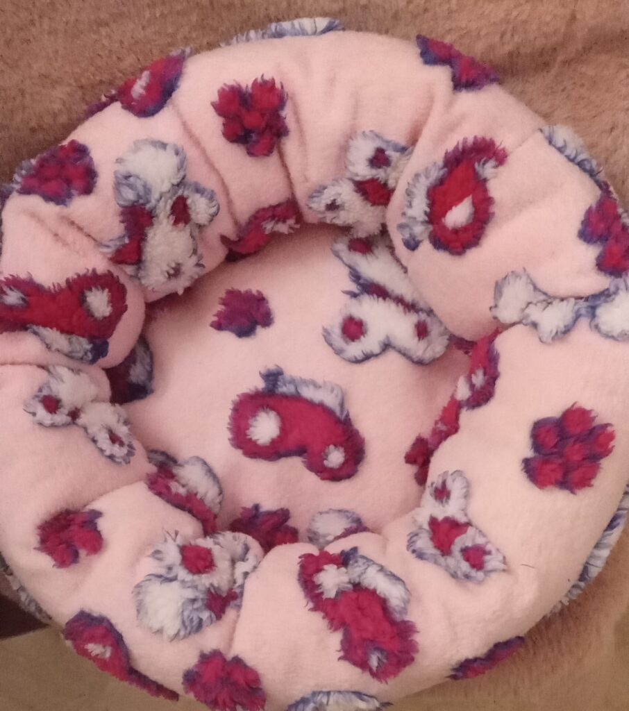 Lekkere kattenmand om heerlijk in weg te dromen lichtrose ondergrond met vlinders erop.Stevig pluche doorsnee 45 cm