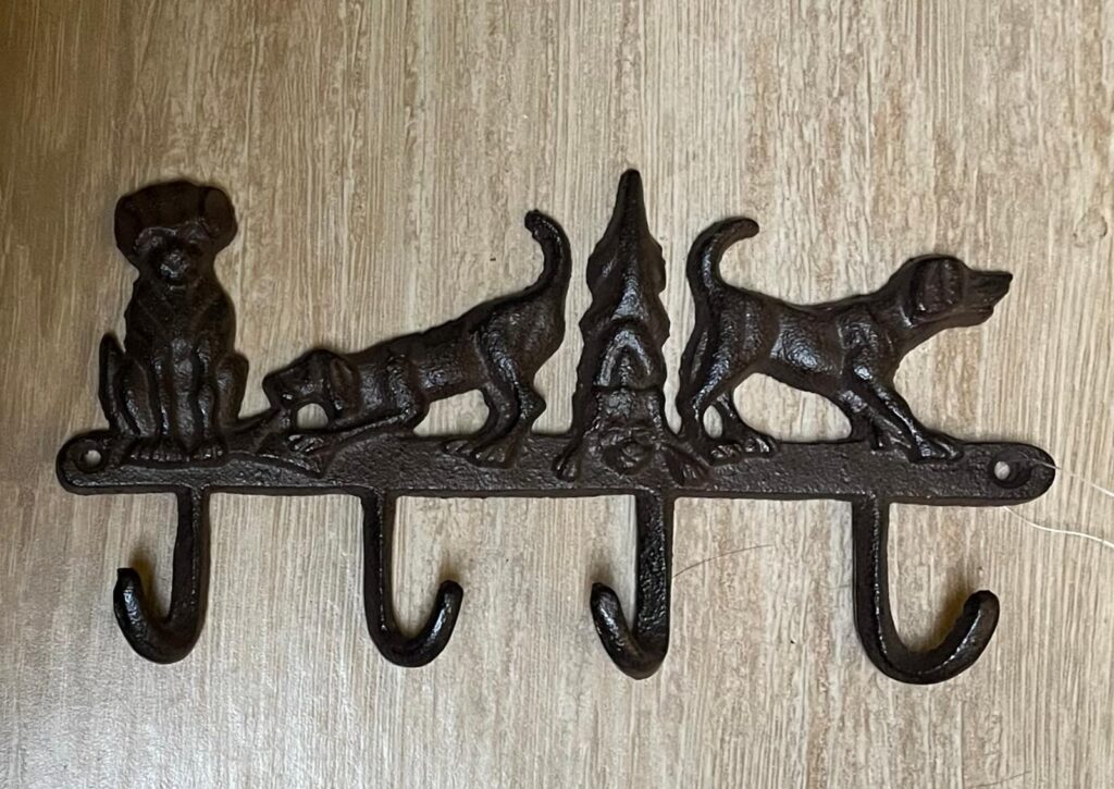 Kapstok bruin smeedijzer. Vrolijke hondjes Ong. 23 cm x 12,5 cm